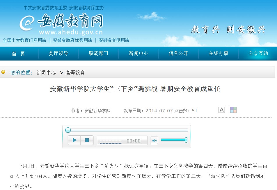 安徽教育网:beat365在线体育官网登录入口大学生“三下乡”遇挑战 暑期安全教育成重任