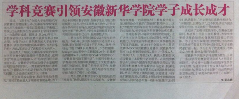新安晚报:学科竞赛引领beat365在线体育官网登录入口学子成长成才