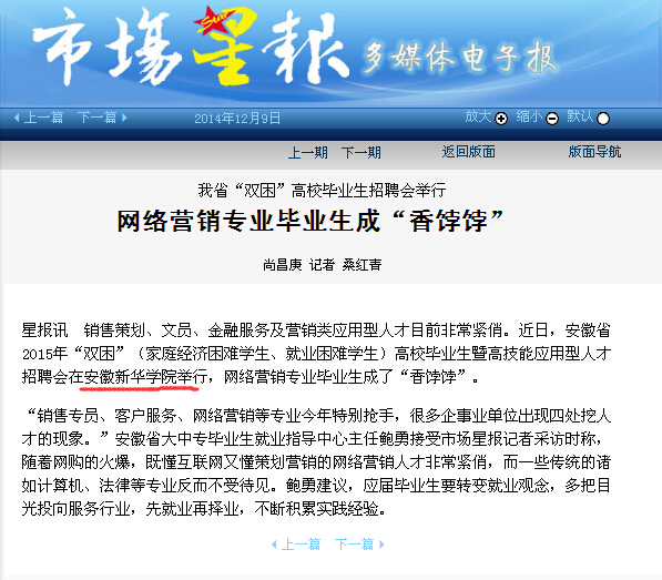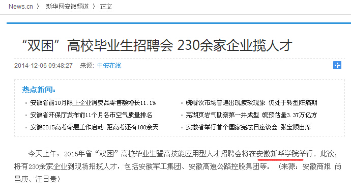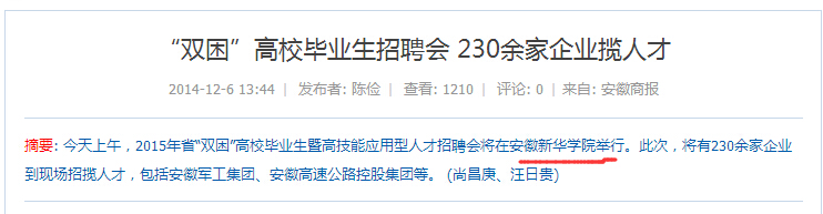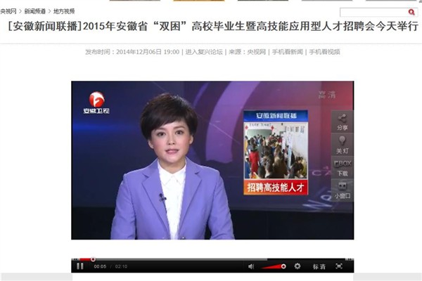 安徽商报、市场星报、安徽新闻联播、新华网安徽频道等媒体报道beat365网登承办开展2015年安徽省“双困”高校毕业生暨高技能应用型人才招聘会