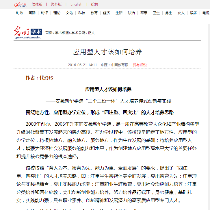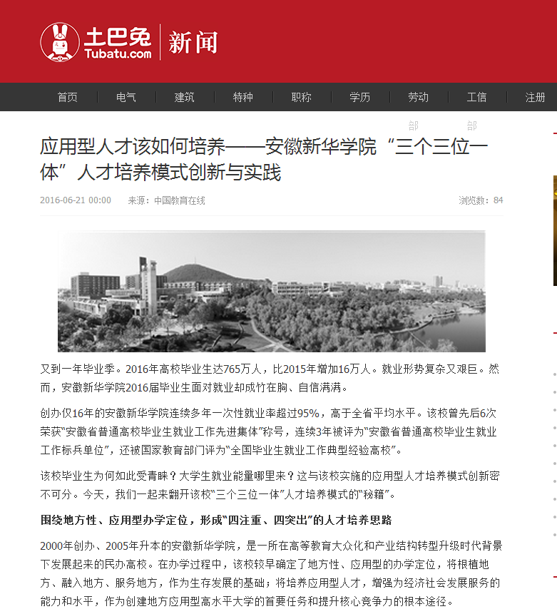 光明网、中国教育在线、搜狐网、中国网传媒经济、土巴兔新闻:应用型人才该如何培养——beat365在线体育官网登录入口“三个三位一体”人才培养模式创新与实践