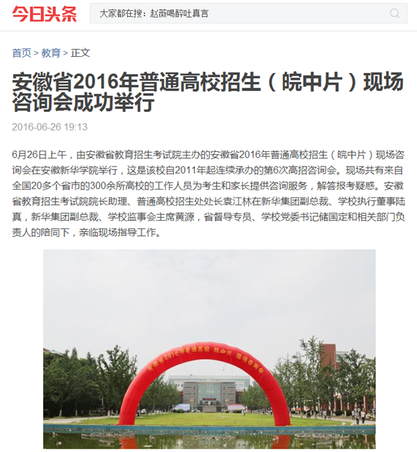 中国教育在线、今日头条、万家热线:安徽省2016年普通高校招生(皖中片)现场咨询会成功举行