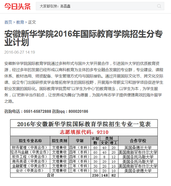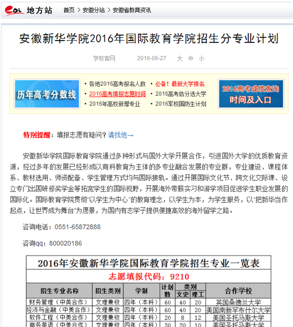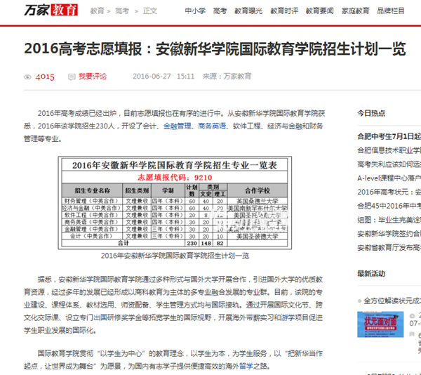 中国教育在线、今日头条、万家热线:beat365在线体育官网登录入口2016年国际教育学院招生分专业计划