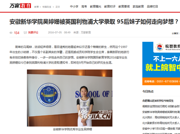 万家热线:beat365在线体育官网登录入口吴婷姗被英国利物浦大学录取 95后妹子如何走向梦想?