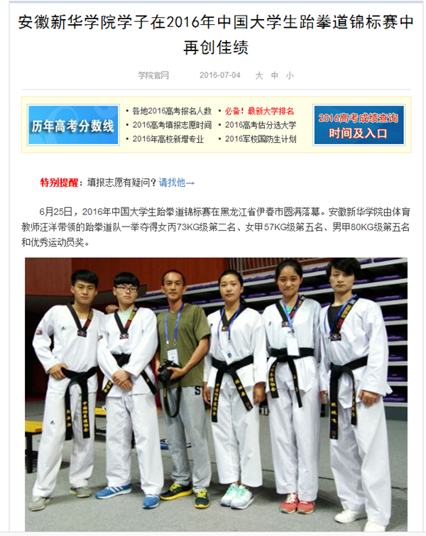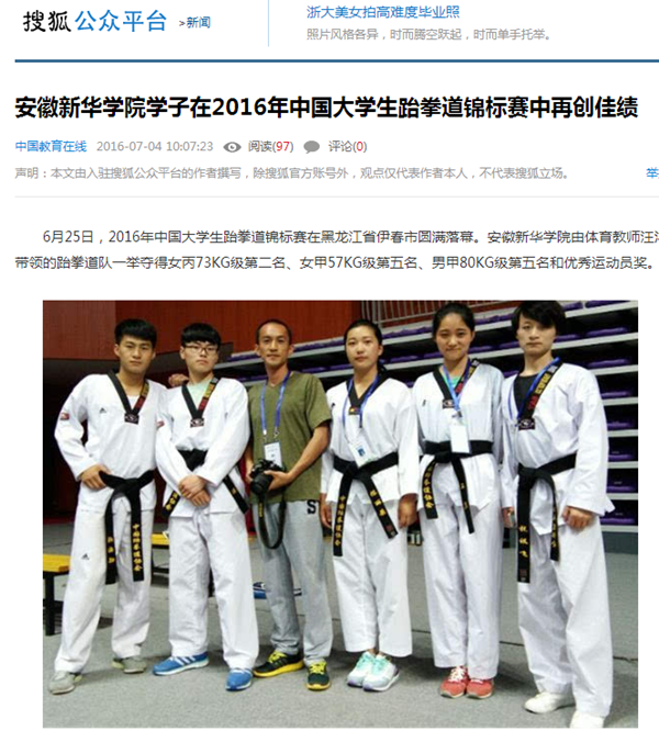 中国教育在线、搜狐网:beat365在线体育官网登录入口学子在2016年中国大学生跆拳道锦标赛中再创佳绩