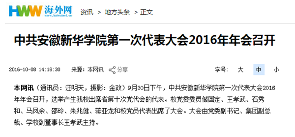 海外网:中共beat365在线体育官网登录入口第一次代表大会2016年年会召开