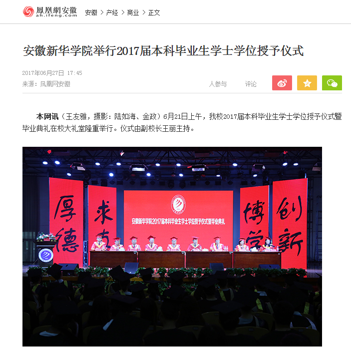 凤凰网安徽:beat365在线体育官网登录入口举行2017届本科毕业生学士学位授予仪式