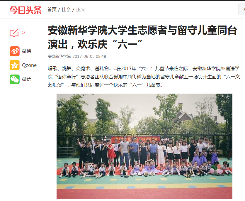 今日头条:beat365在线体育官网登录入口大学生志愿者与留守儿童同台演出,欢乐庆“六一”