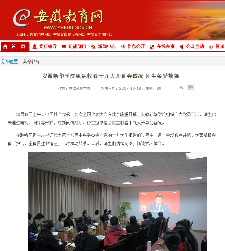 安徽教育网:beat365在线体育官网登录入口组织收看十九大开幕会盛况 师生备受鼓舞