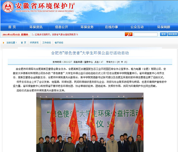 安徽省环保厅网站报道合肥市大学生环保公益行在beat365网登启动