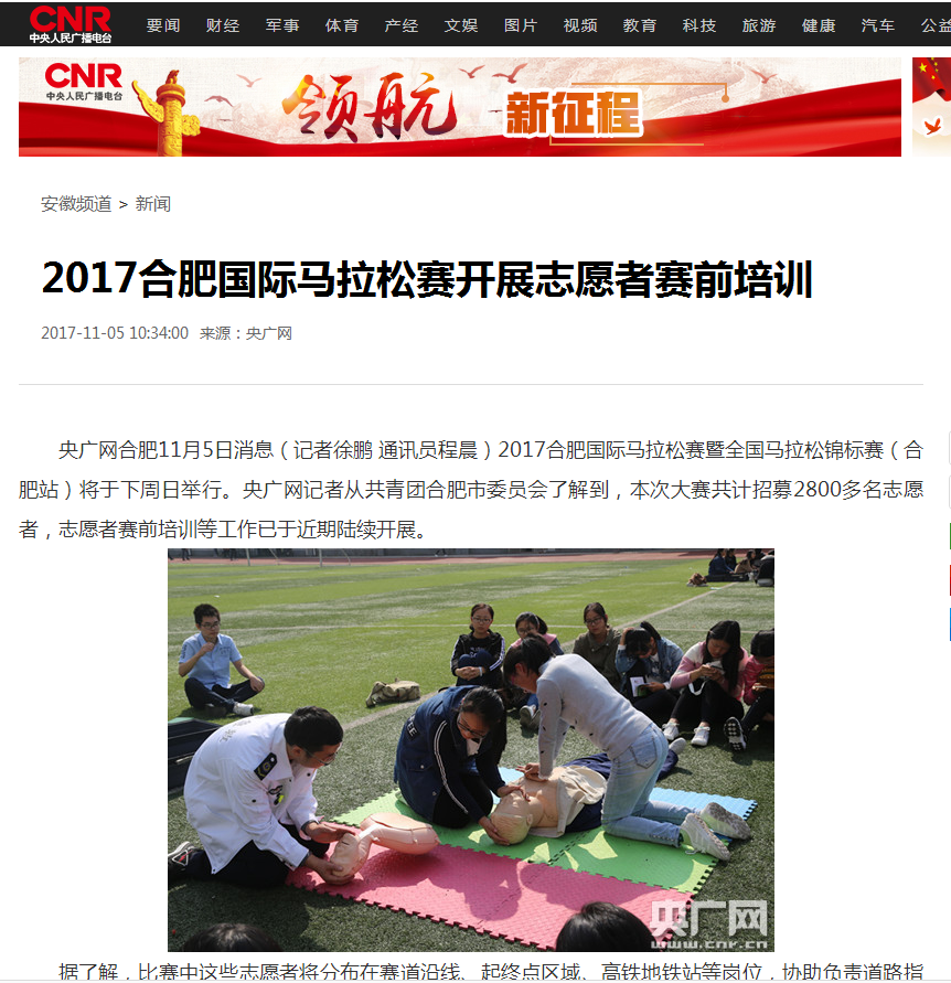新华网、央广网、中安互联网、搜狐网:合肥国际马拉松赛即将开始 志愿者接受赛前培训