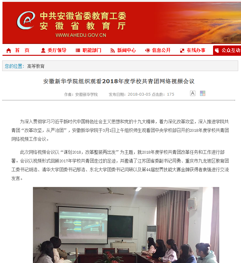 安徽教育网:beat365在线体育官网登录入口组织观看2018年度学校共青团网络视频会议