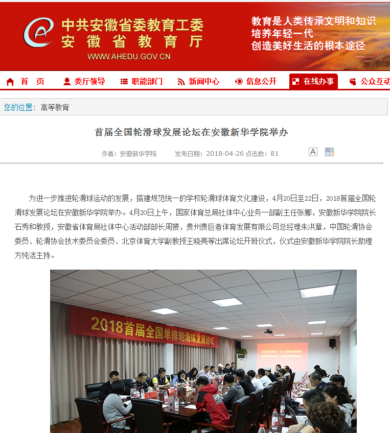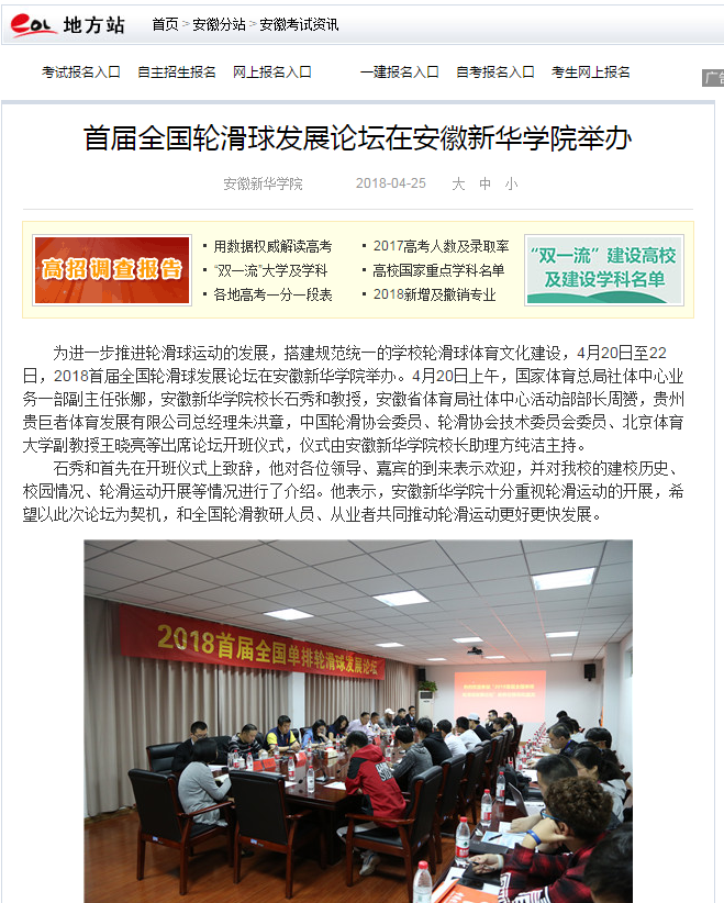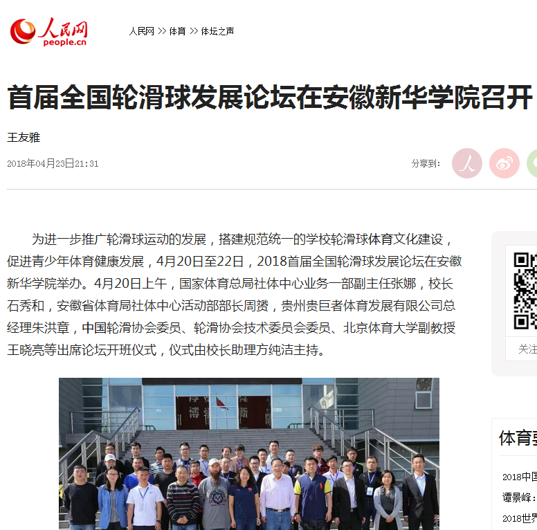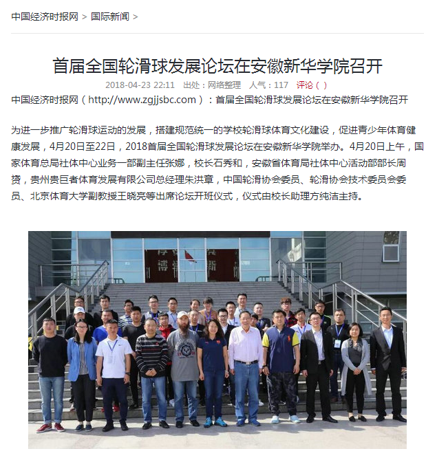 人民网、央广网、中国教育在线、国家体育总局、安徽教育网、中国经济时报网、体坛网、网易、搜狐网:首届全国轮滑球发展论坛在beat365在线体育官网登录入口召开