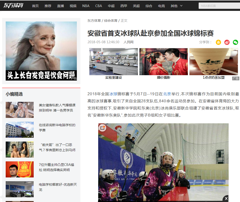 人民网、东方体育新闻、强国论坛、今日头条、搜狐网、新浪看点:安徽省首支冰球队赴京参加全国冰球锦标赛