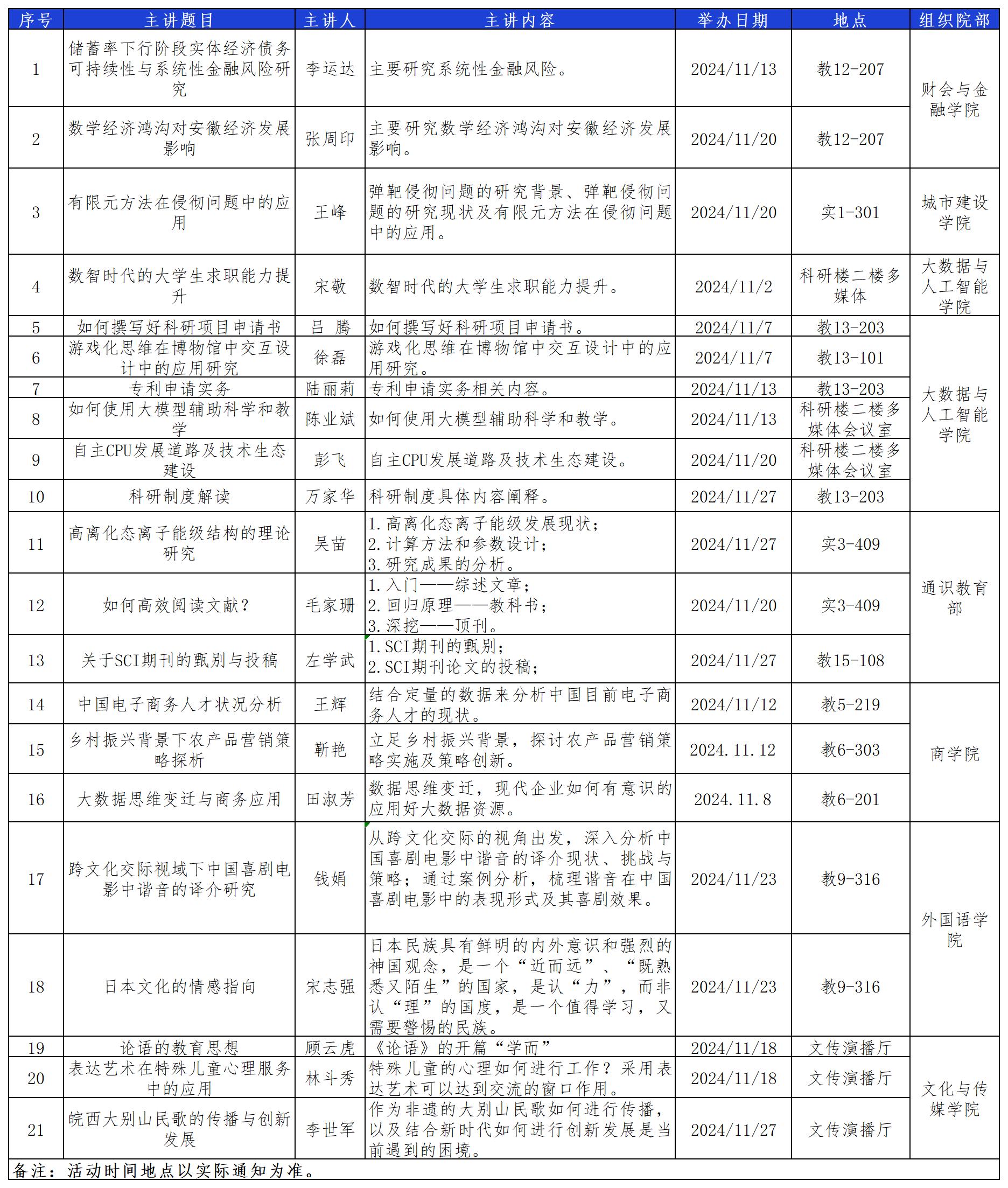 beat365在线体育官网登录入口2024年11月科研活动预告表