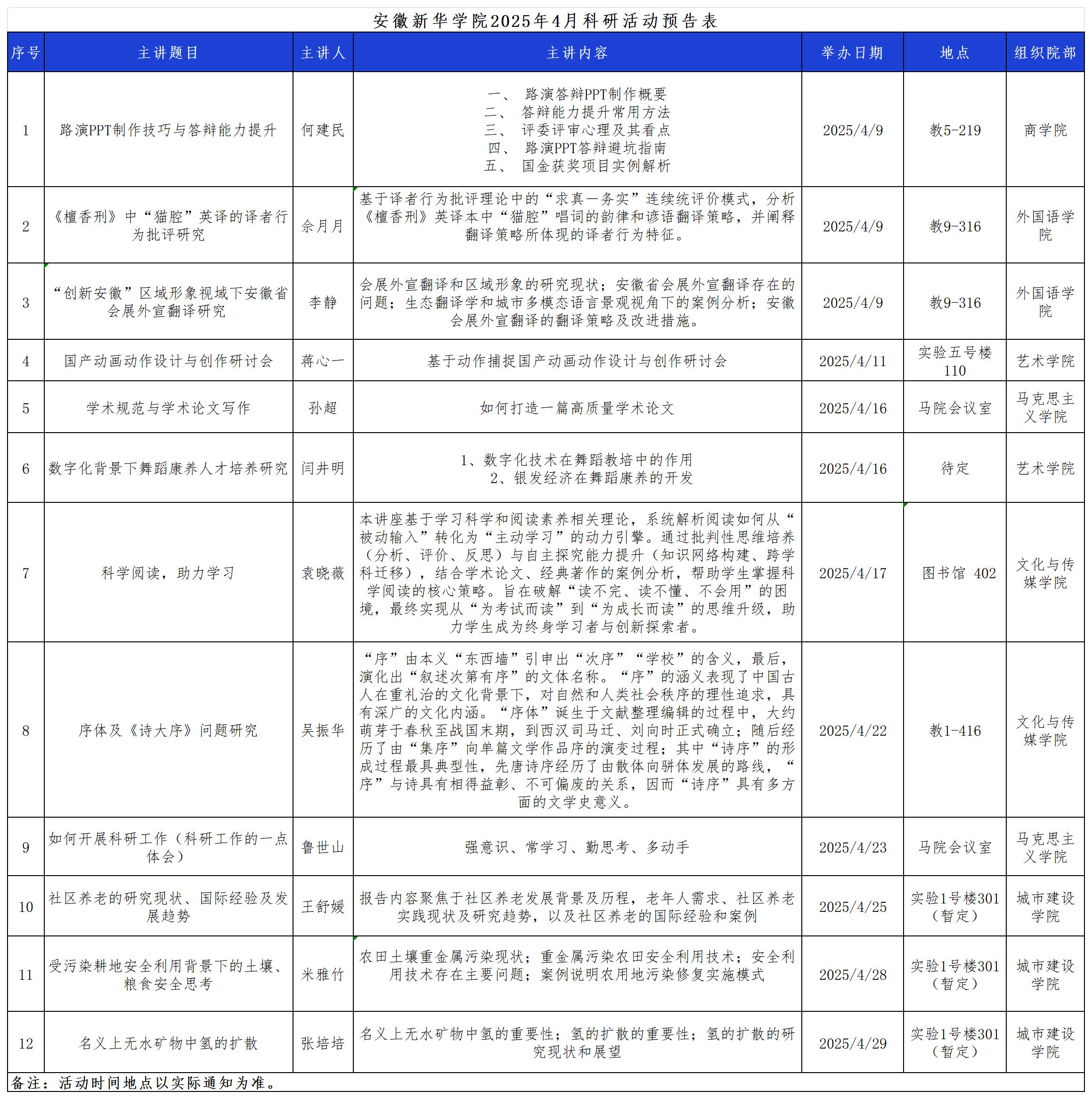 beat365在线体育官网登录入口2025年4月科研活动预告表